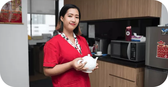 Our pantry tea ladies are well-versed in providing beverages and snacks to clients, VIPs, senior management personnel, and office visitors. They will also keep track of the beverage and light refreshments inventory and the pantry's hygiene.