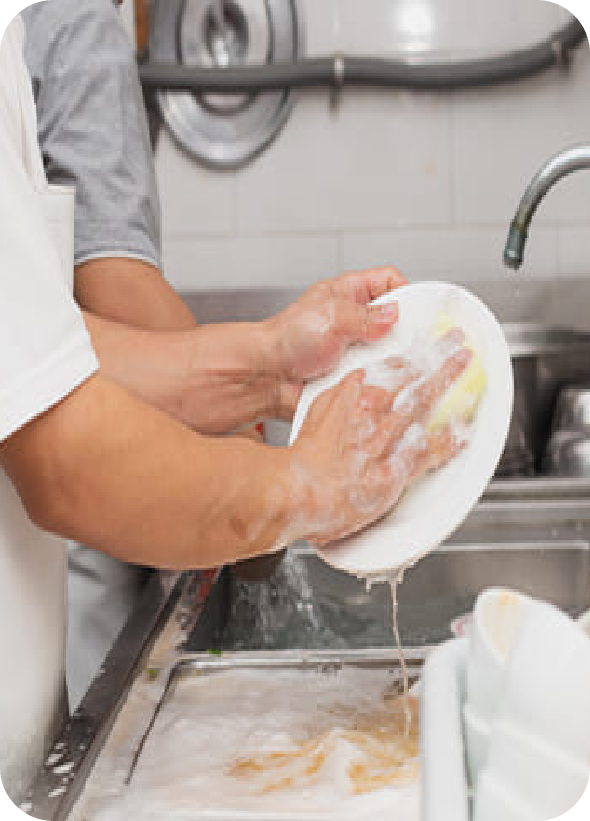 - Cleaning of kitchenware, dishware, and equipment